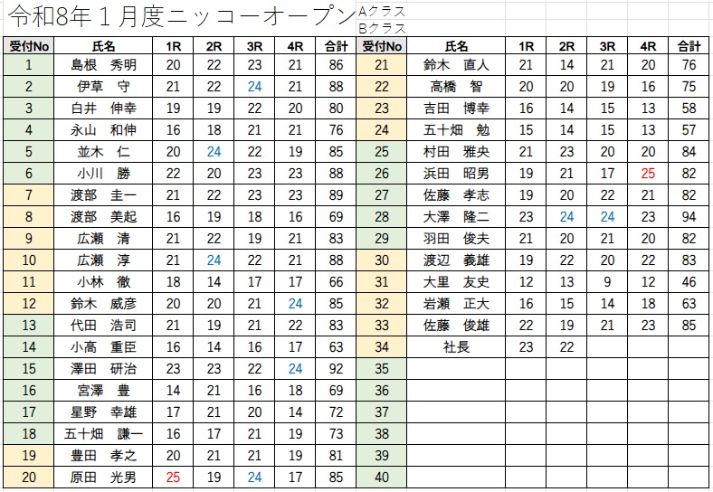 令和8年1月度ニッコーオープン大会